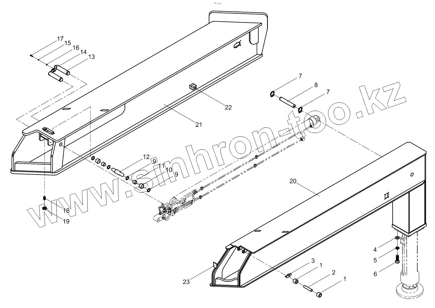 Каталог запасных частей к технике: Zoomlion K56X-6RZ. Front left outrigger 001619003A0200000