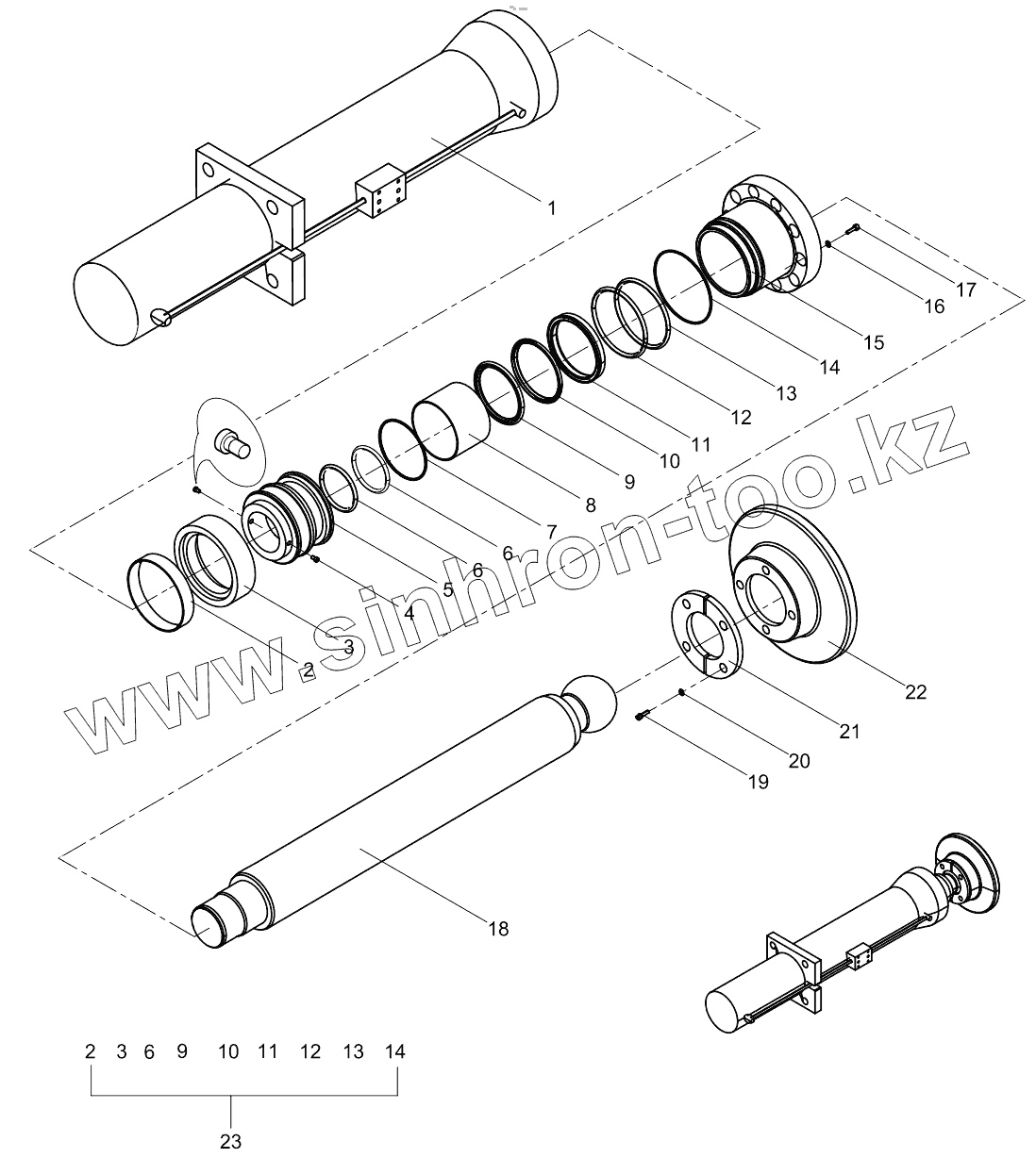 Каталог запасных частей к технике: Zoomlion K56X-6RZ. Front outrigger cylinder (V) 001613904A0300000