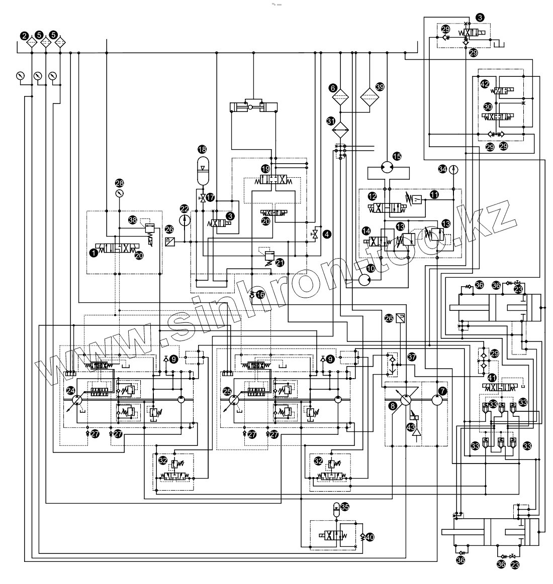 Каталог запасных частей к технике: Zoomlion K56X-6RZ. Hydraulic schematic of pumping system 001621217A0000000