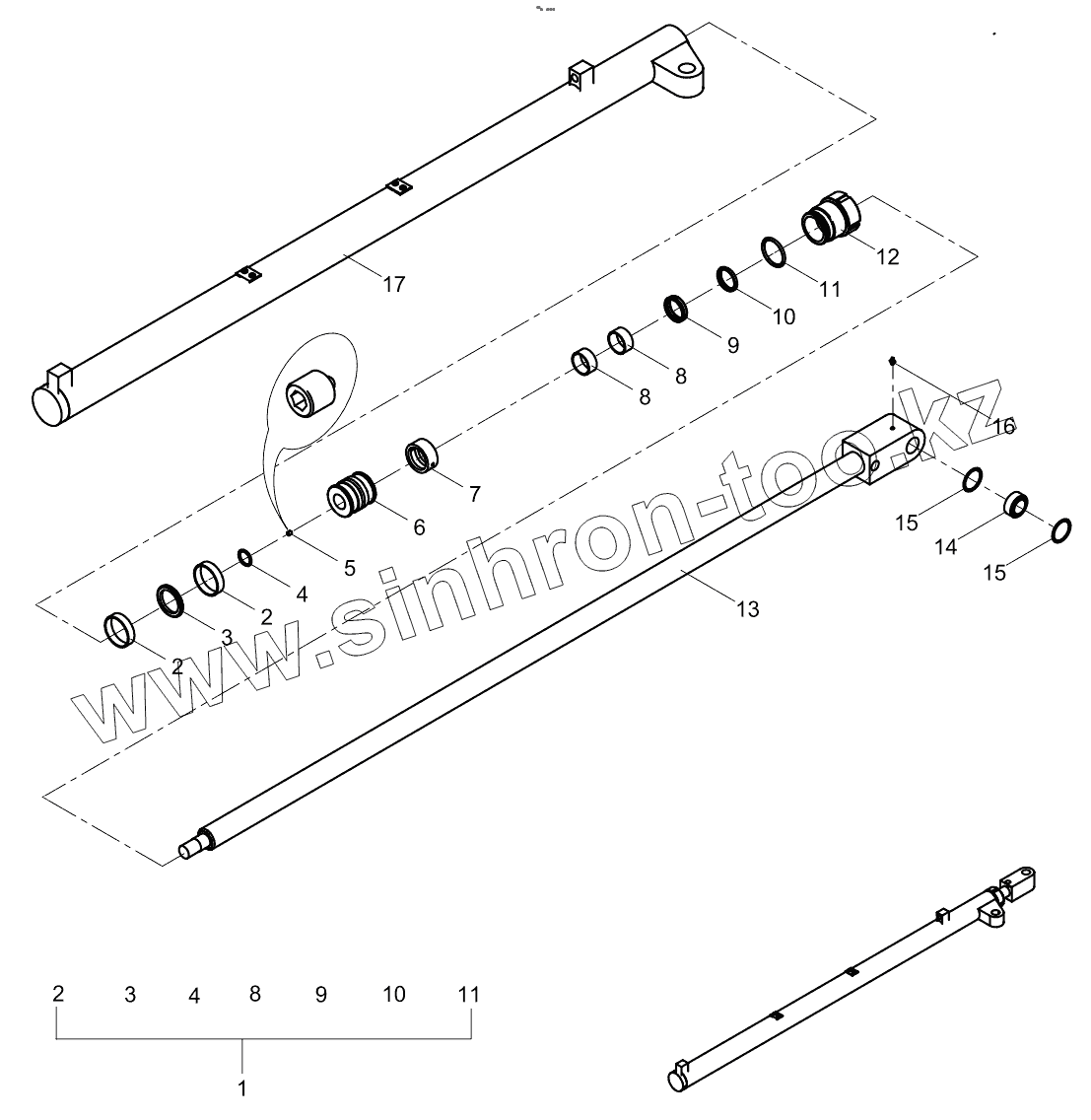 Каталог запасных частей к технике: Zoomlion K56X-6RZ. Left major pole cylinder (H) 001619004B0800000