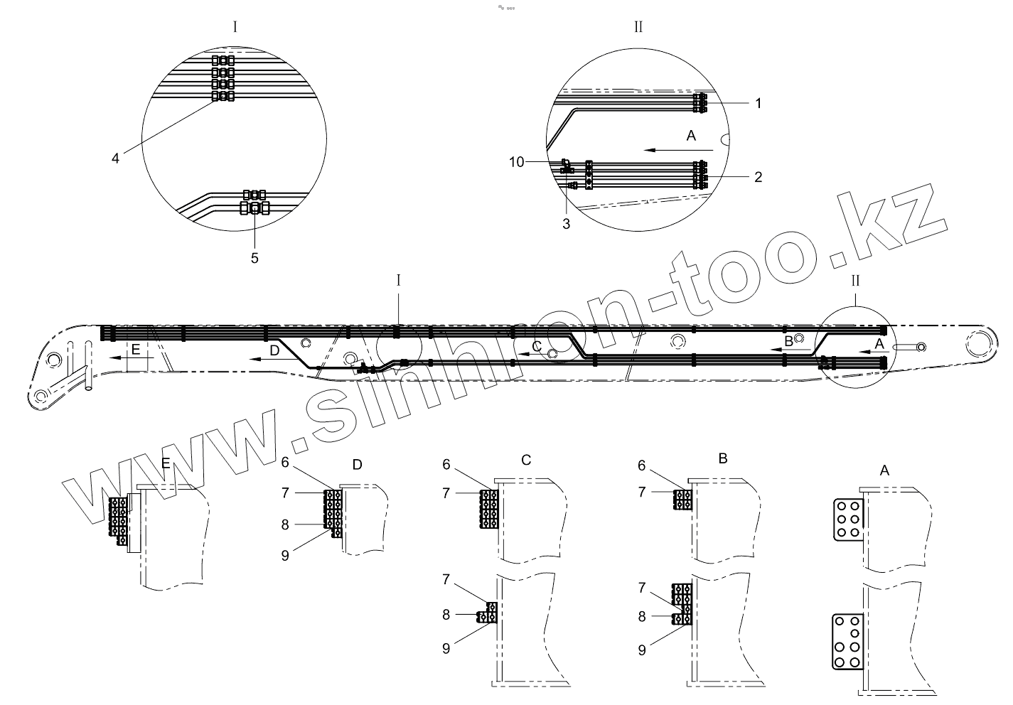 2nd boom cylinder piping 001621249A0007000
