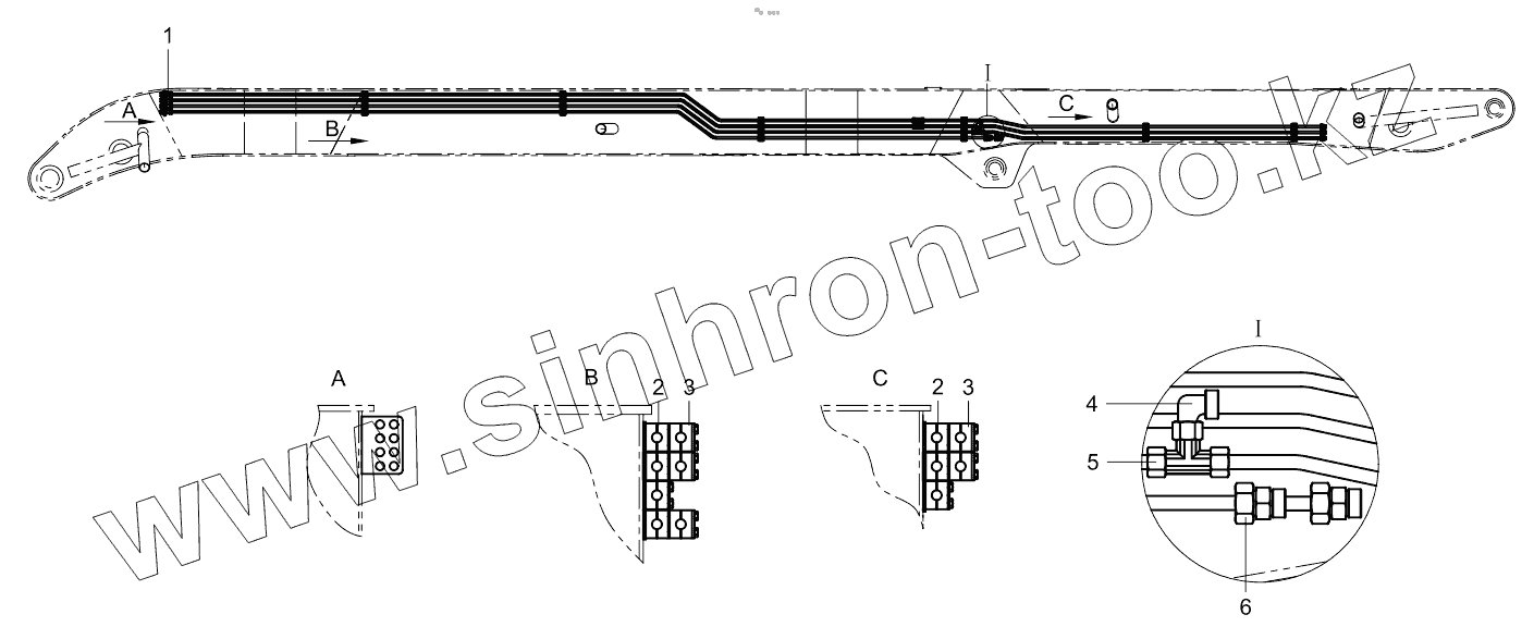 6th boom cylinder piping 001621249A0011000