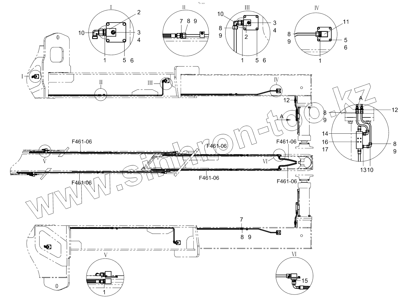 Каталог запасных частей к технике: Zoomlion K56X-6RZ. Pipelaying of front right outrigger 001619157A0103000