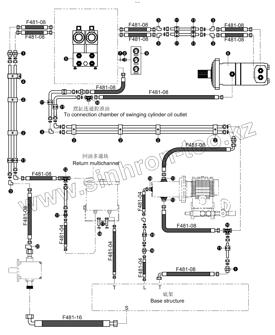Каталог запасных частей к технике: Zoomlion K56X-6RZ. Pipelaying of rabbling and cleaning circuit 001619120A0100000