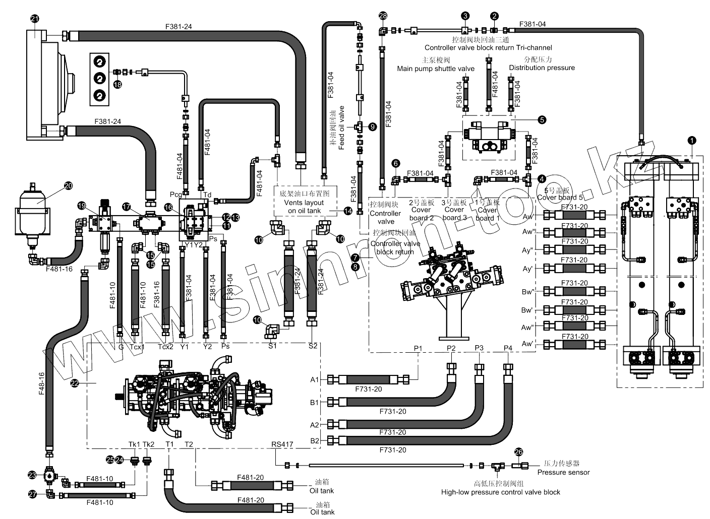 Каталог запасных частей к технике: Zoomlion K56X-6RZ. Pumping circuit piping layout 001619118A0400000