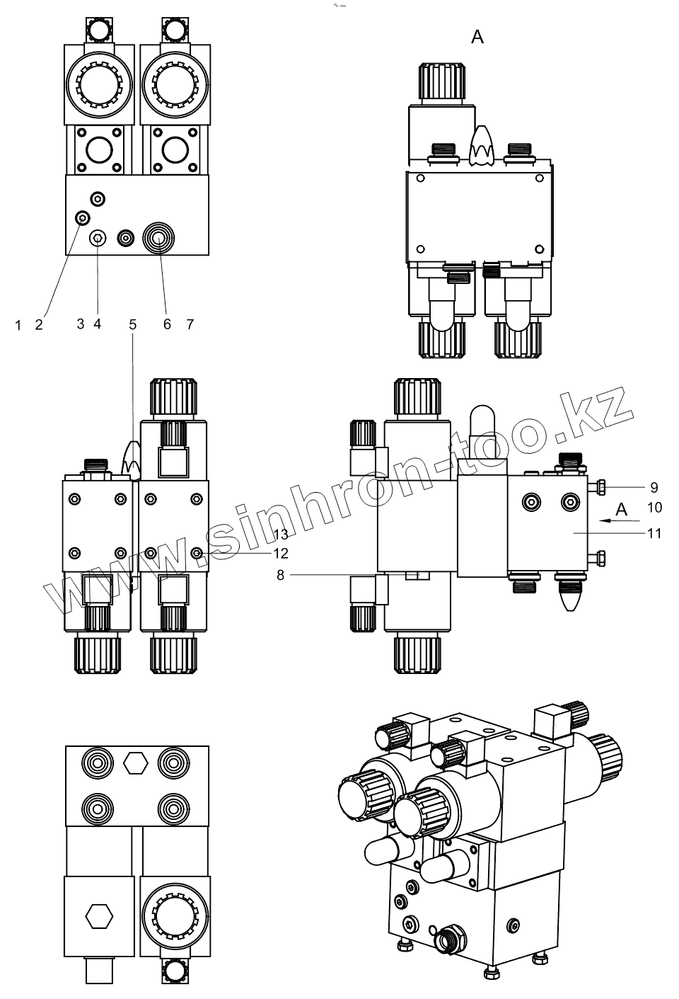 Каталог запасных частей к технике: Zoomlion K56X-6RZ. Rabbling and cleaning valve block 001607220A0010000