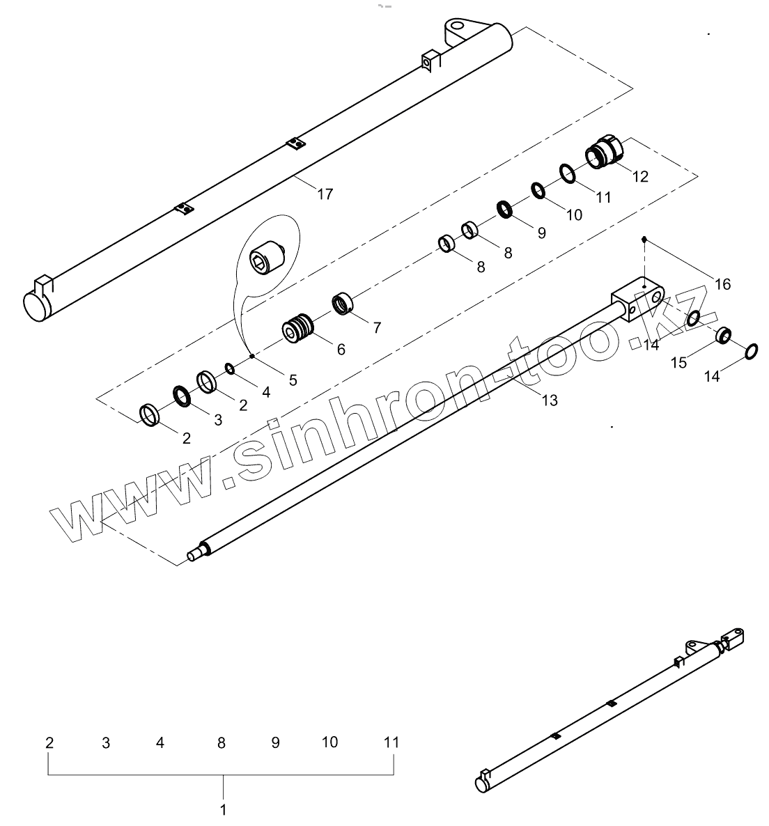 Каталог запасных частей к технике: Zoomlion K56X-6RZ. Right major pole cylinder (H) 001619004B1000000