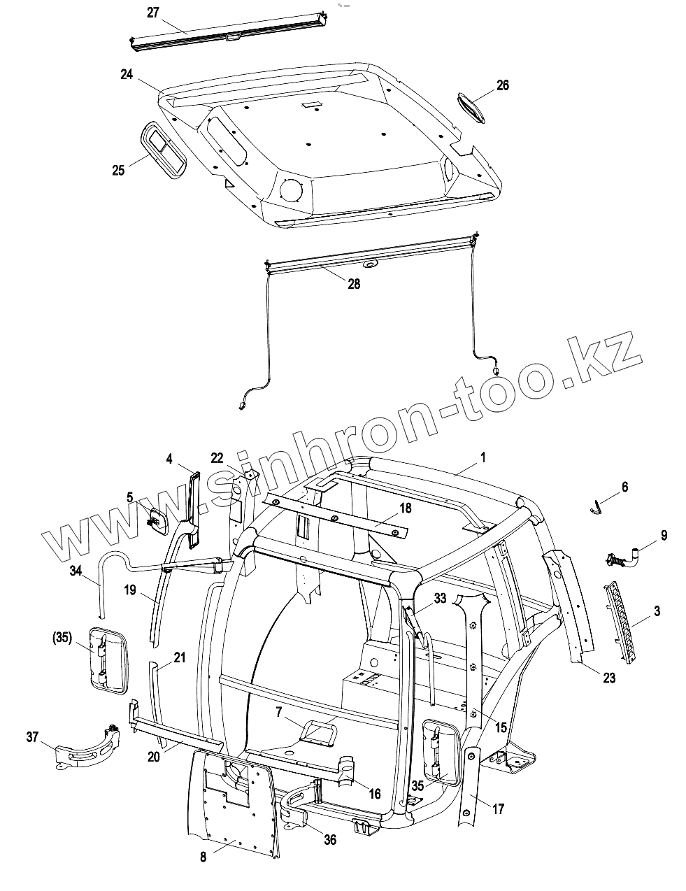 Каталог запасных частей к технике: Zoomlion PL2304. 015723045LB000000 Cab assembly