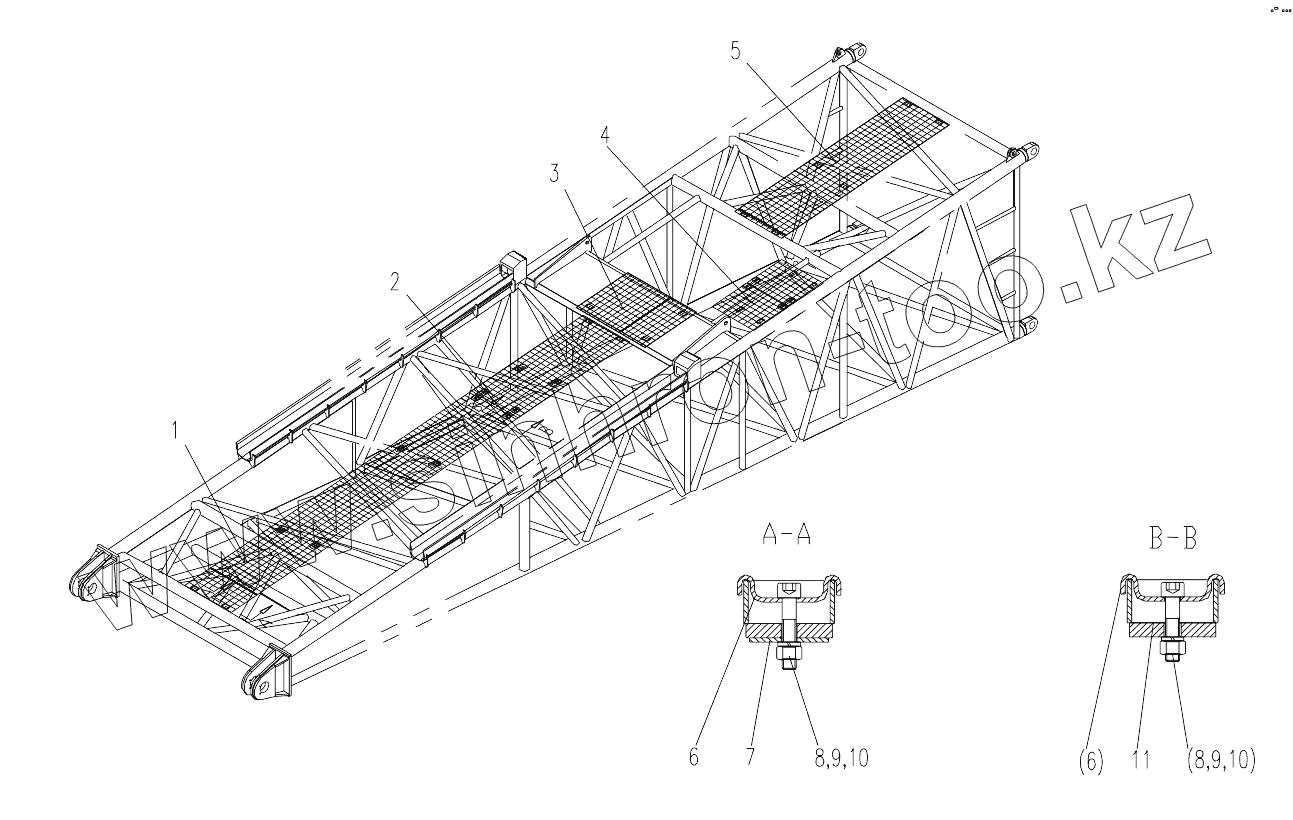 Каталог запасных частей к технике: Zoomlion QUY260CR-32Y. MAIN BOOM PIVOT SECTION ATTACHMENTS ASSEMBLY D00663400112400001Y