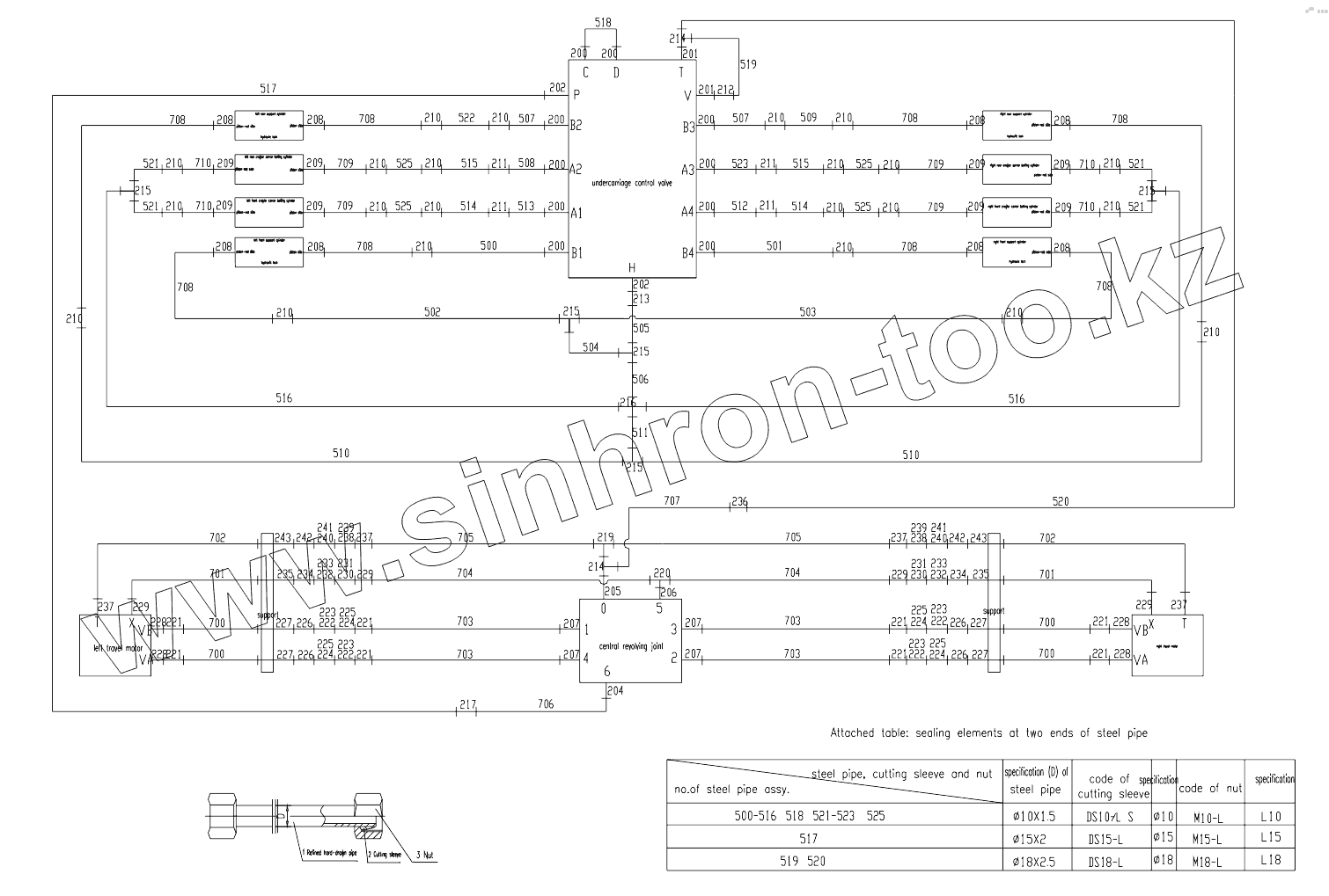 PIPE LAYOUT – UNDERCARRIAGE HYDRAULIC SYSTEM D00663401700000002Y