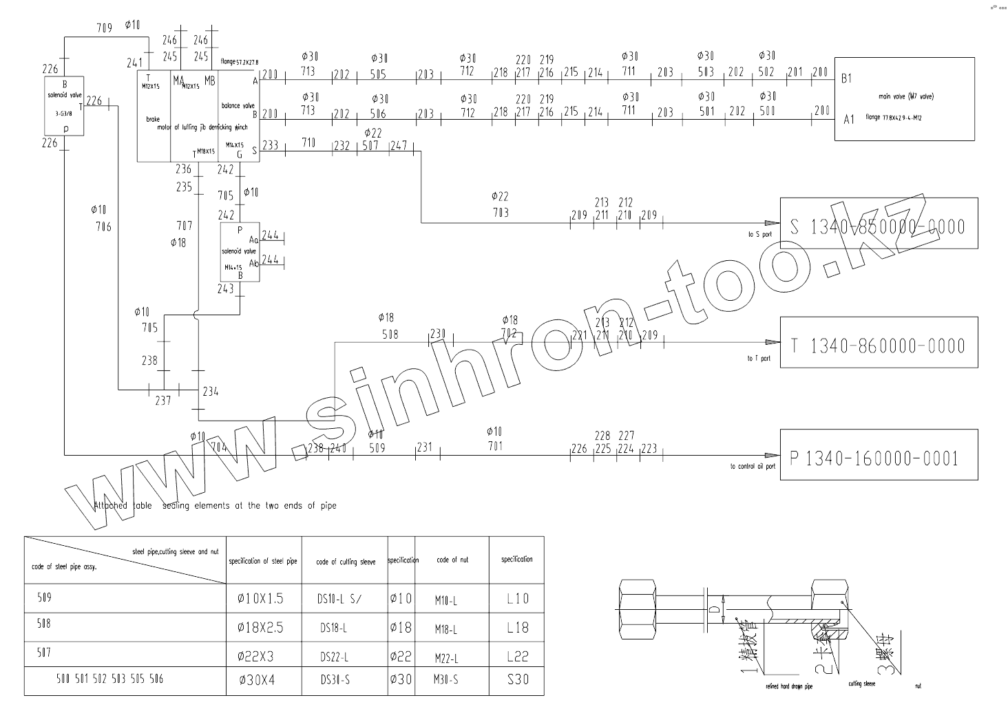 Каталог запасных частей к технике: Zoomlion QUY260CR-32Y. PIPE LAYOUT DRAWING-BOOM HYDRAULIC SYSTEM D00663408800000000Y