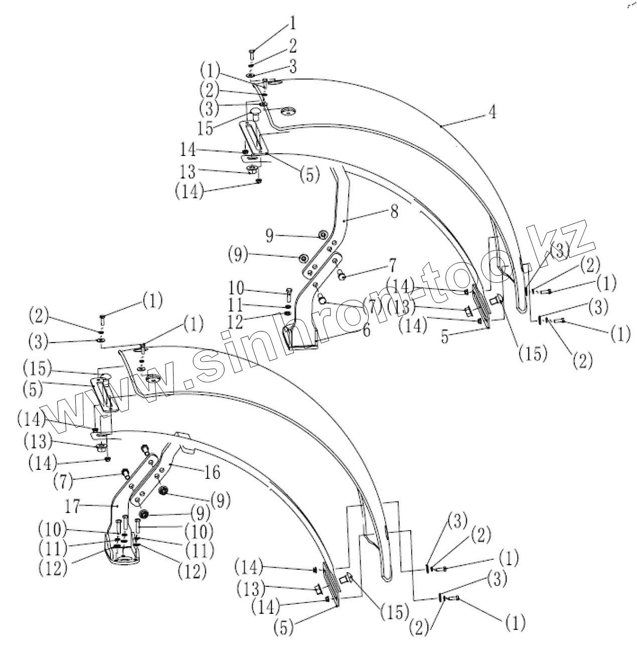Каталог запасных частей к технике: Zoomlion RS. 015716047SAB10000 Монтаж брызговика в сборе