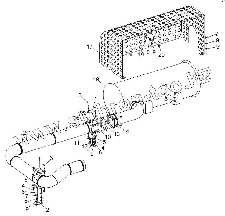 Каталог запасных частей к технике: Zoomlion RT-35. EXHAUST SYSTEM D00757701200000002Y
