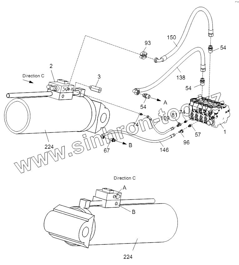 Каталог запасных частей к технике: Zoomlion RT-35. PIPE LAYOUT - SUPERSTRUCTURE HYDRAULIC SYSTEM (DERRICKING MECHANISM) D00755701620000001Y