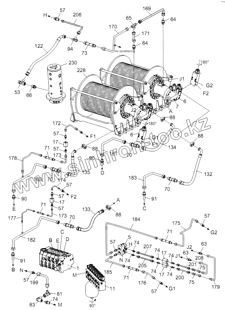 Каталог запасных частей к технике: Zoomlion RT-35. PIPE LAYOUT - SUPERSTRUCTURE HYDRAULIC SYSTEM (HOIST MECHANISM) D00755701620000001Y