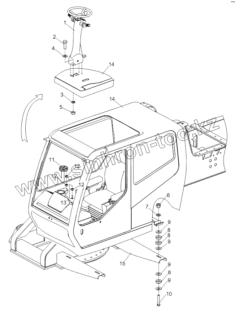 Каталог запасных частей к технике: Zoomlion RT-551 (4x4). DRIVER'S CAB PRE-ASSEMBLY D00755905000000001Y