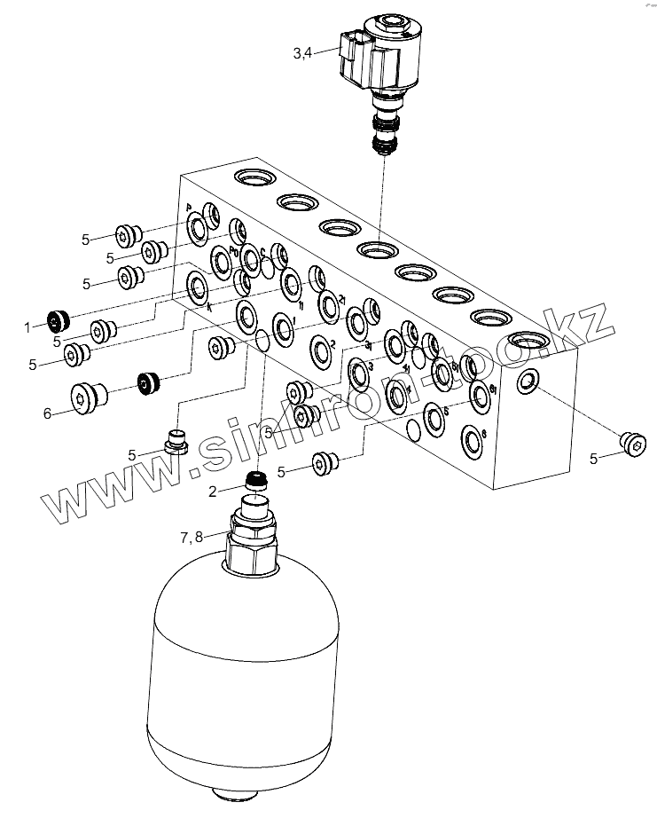 Каталог запасных частей к технике: Zoomlion RT-551 (4x4). PILOT-OPERATED CONTROL VALVE BLOCK D1010303710_101227Y