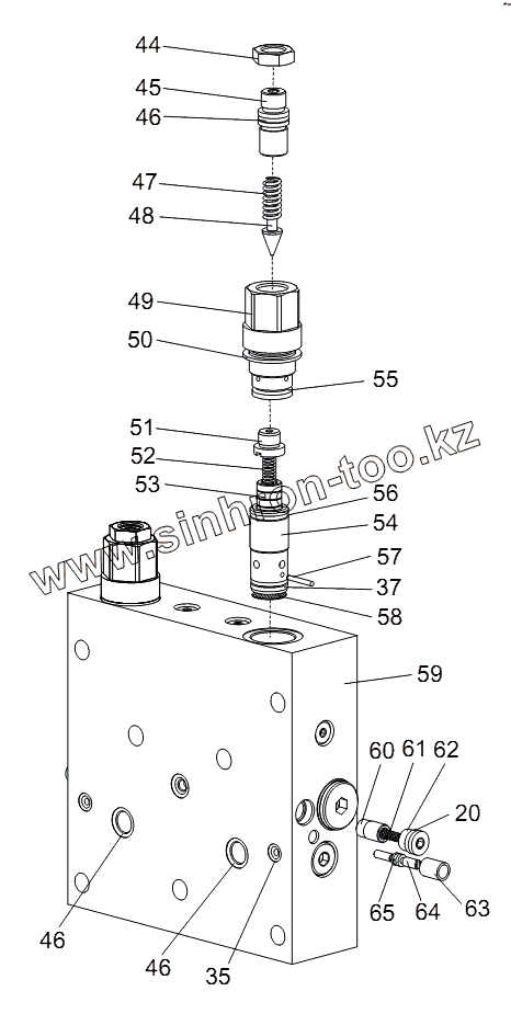 Каталог запасных частей к технике: Zoomlion RT-55. D1010300495_6500Y SLEWING CUSHION VALVE (CUSHION VALVE)