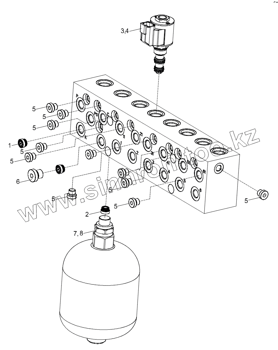 Каталог запасных частей к технике: Zoomlion RT-55. PILOT-OPERATED CONTROL VALVE BLOCK D1010303710_101227Y