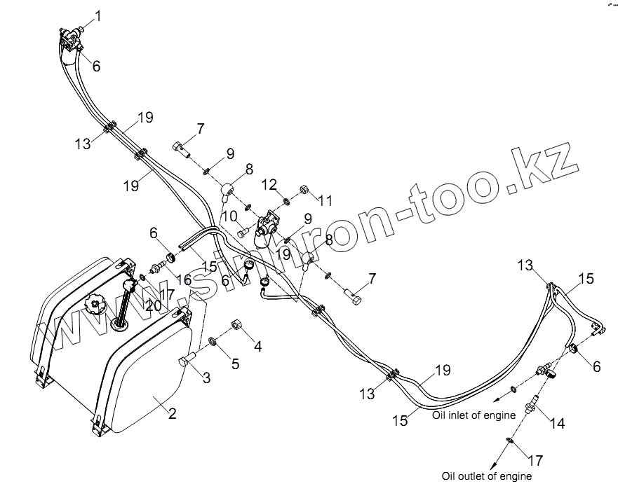 Oil inlet fitting, fuel tank