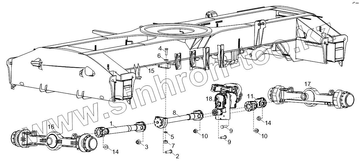 Каталог запасных частей к технике: Zoomlion RT-55. PROPELLER SHAFT LAYOUT D00757912200000000Y