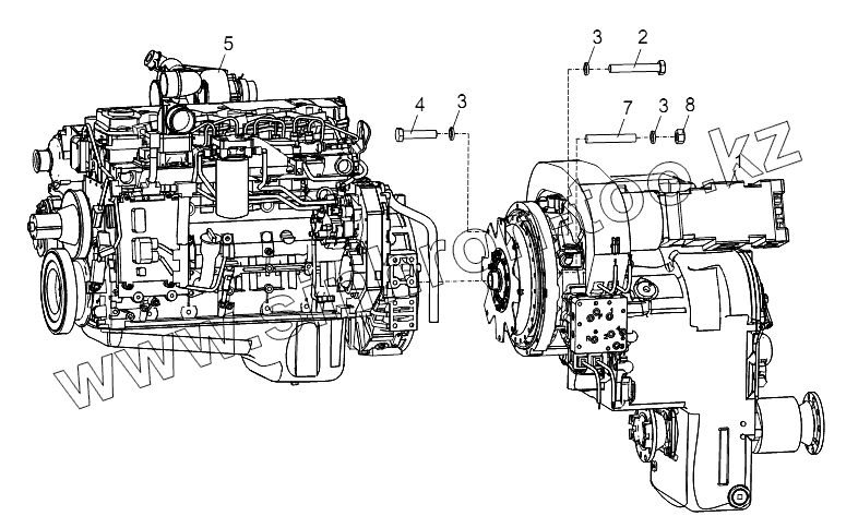 Каталог запасных частей к технике: Zoomlion RT-55. TRANSMISSION AND ENGINE PRE-ASSEMBLY D00757911700200000Y