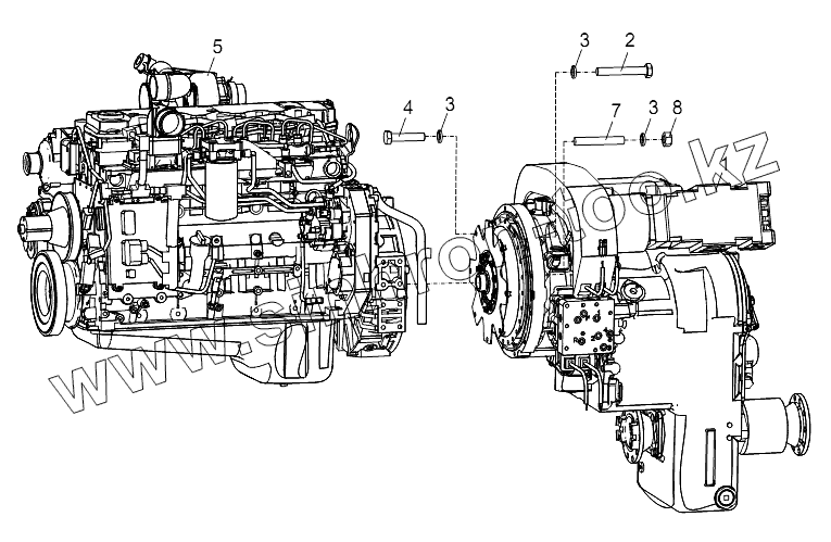 Каталог запасных частей к технике: Zoomlion RT-55. TRANSMISSION AND ENGINE PRE-ASSEMBLY D00757911700210000Y