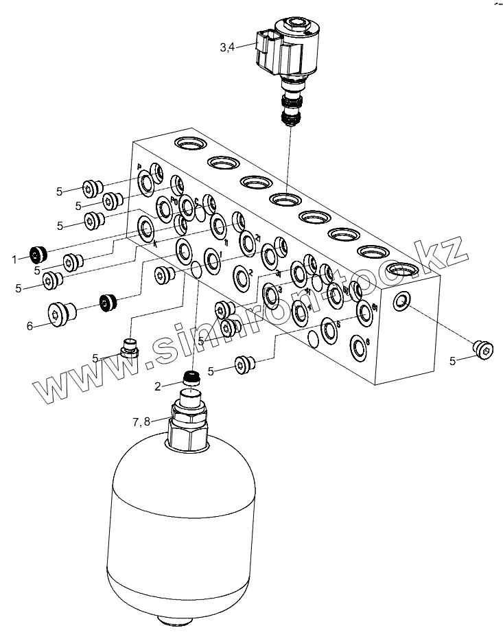 Каталог запасных частей к технике: Zoomlion RT-75. PILOT-OPERATED CONTROL VALVE BLOCK