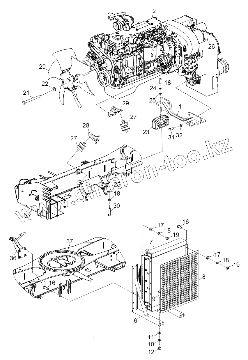 Каталог запасных частей к технике: Zoomlion RT-75. TRANSMISSION AND ENGINE INSTALLATION