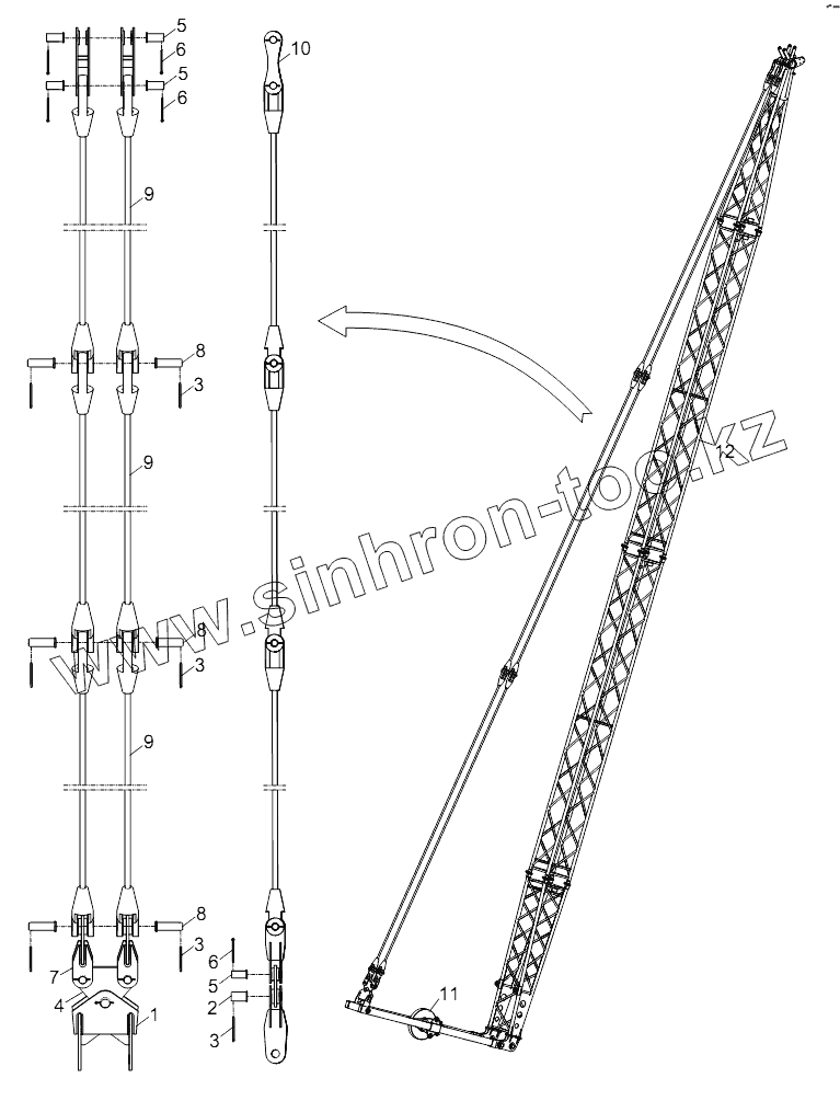 Каталог запасных частей к технике: Zoomlion ZCC1100H. FIXED JIB FRONT GUY LINES D00663115400600000Y