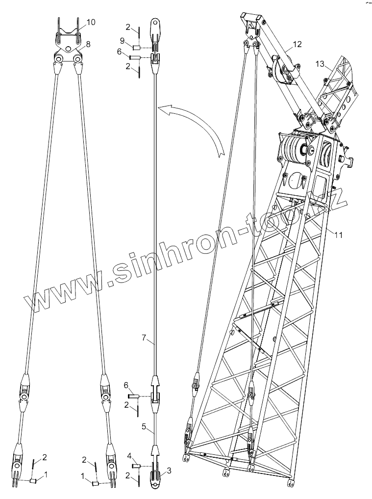 Каталог запасных частей к технике: Zoomlion ZCC1100H. FIXED JIB REAR GUY LINES D00663115400400000Y