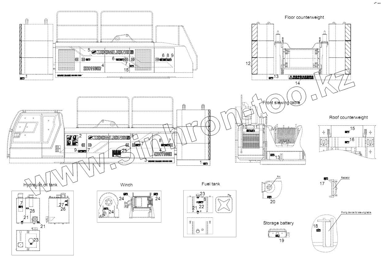 Каталог запасных частей к технике: Zoomlion ZCC1100H. INSTALLATION OF SIGNS ON SLEWING TABLE D00663117000600000Y