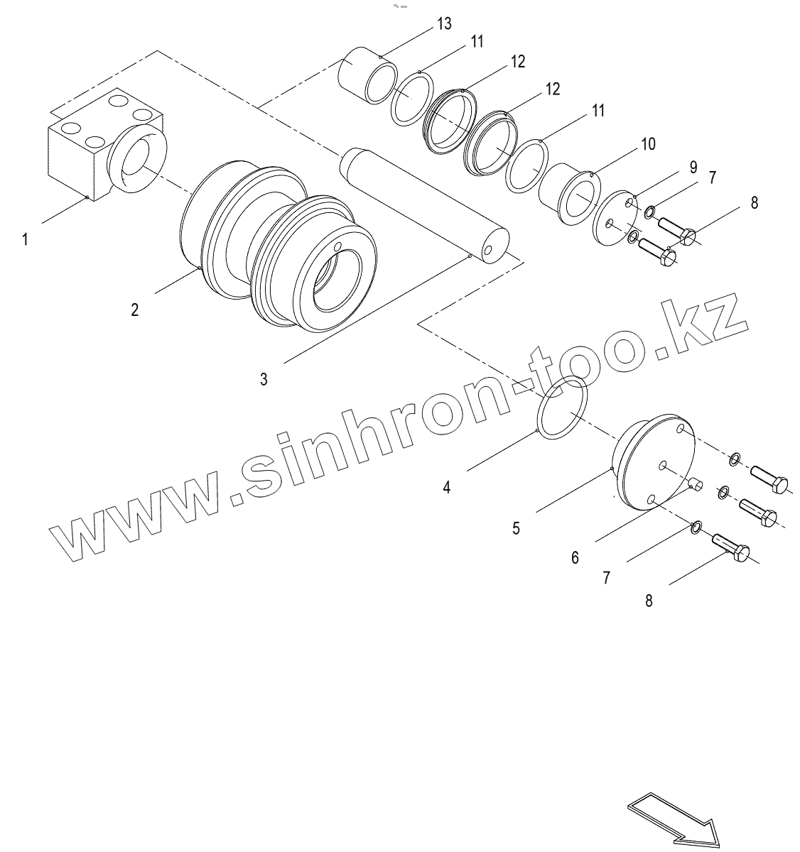 Каталог запасных частей к технике: Zoomlion ZE205E. Carrier Roller Assy
