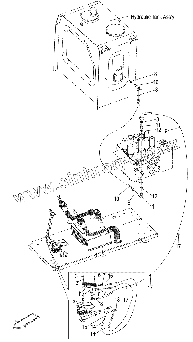 Каталог запасных частей к технике: Zoomlion ZE205E. Hydraulic Breaker Pilot Piping