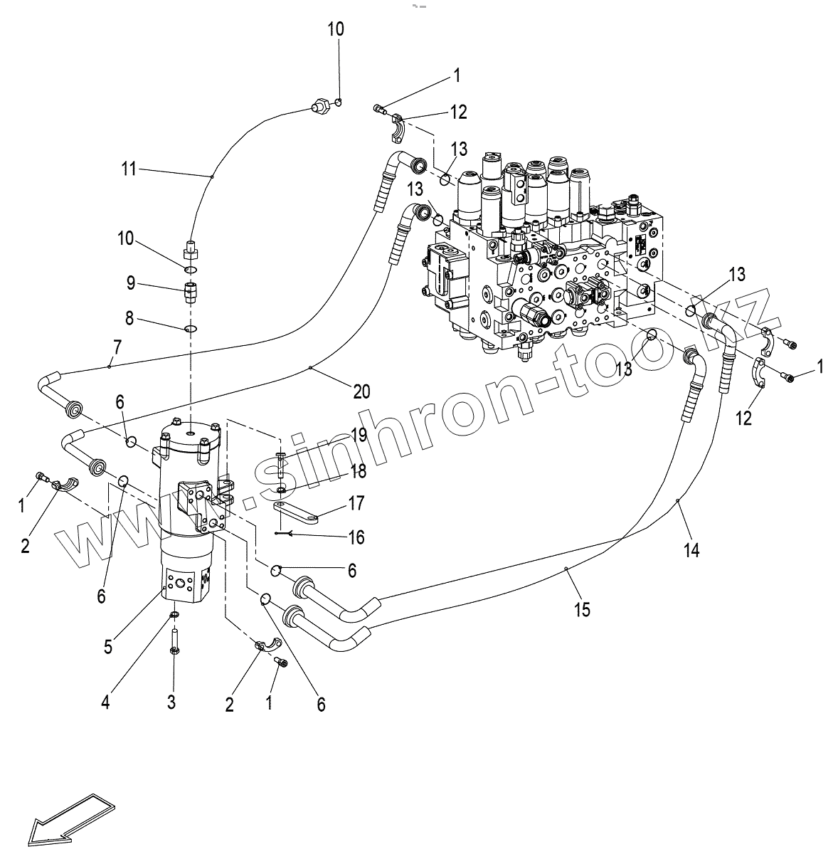 Каталог запасных частей к технике: Zoomlion ZE205E. Turning Joint Oil Circuit