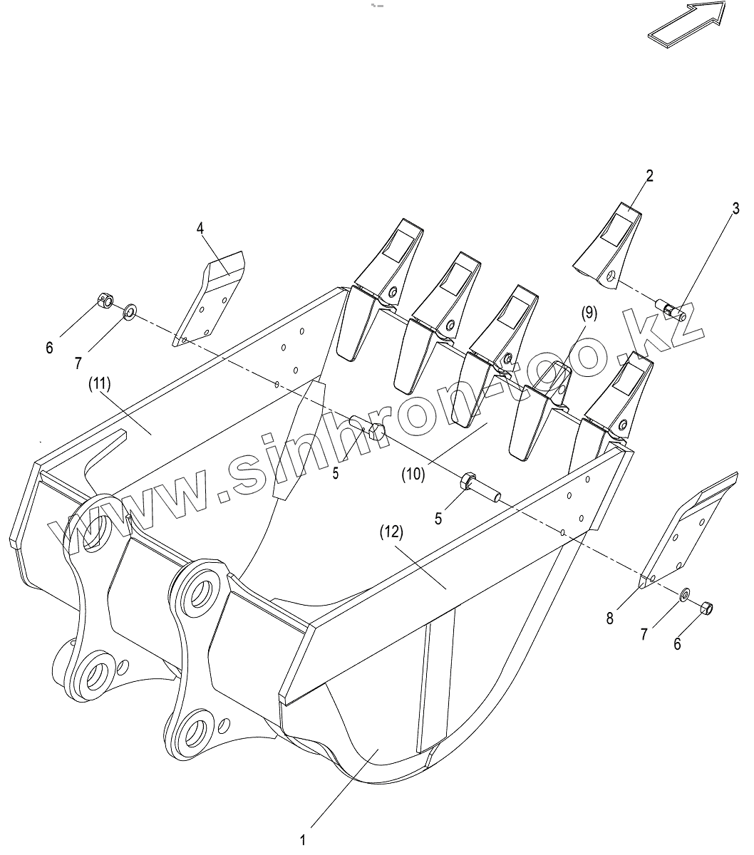 Каталог запасных частей к технике: Zoomlion ZE205E. Wide Bucket Assy (Wide Bucket, 1.0m3)
