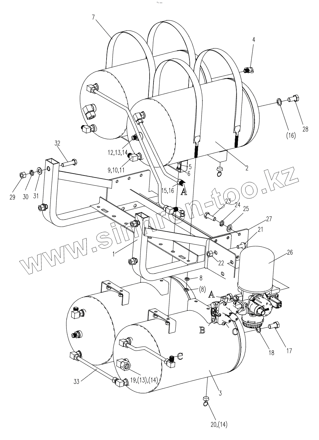 Каталог запасных частей к технике: Zoomlion ZLJ5480JQZV3. AIR RESERVOIR AND VALVE BLOCK ASSY. D00672403501000001Y