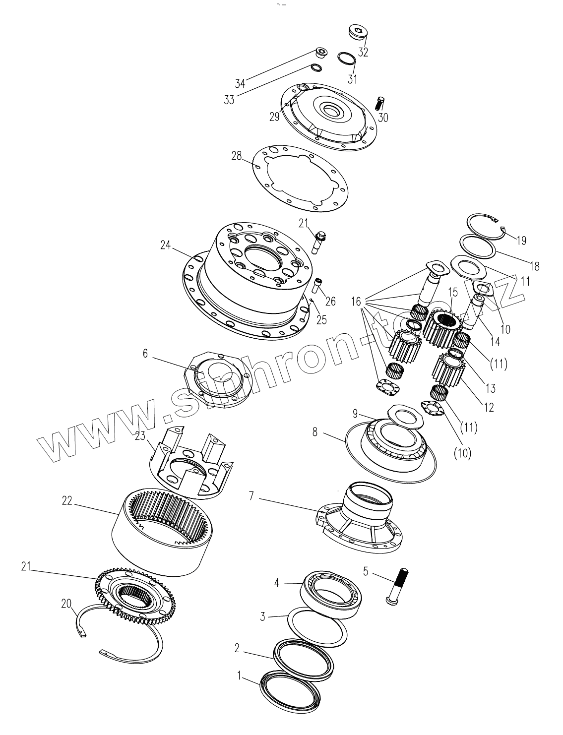 Каталог запасных частей к технике: Zoomlion ZLJ5480JQZV3. DRIVE AXLE STEERED (HUB REDUCER) D1030100872_100003Y