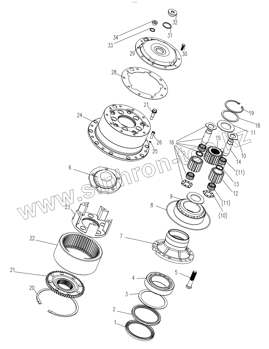 Каталог запасных частей к технике: Zoomlion ZLJ5480JQZV3. DRIVE AXLE STEERED (HUB REDUCER) D1030100873_100003Y