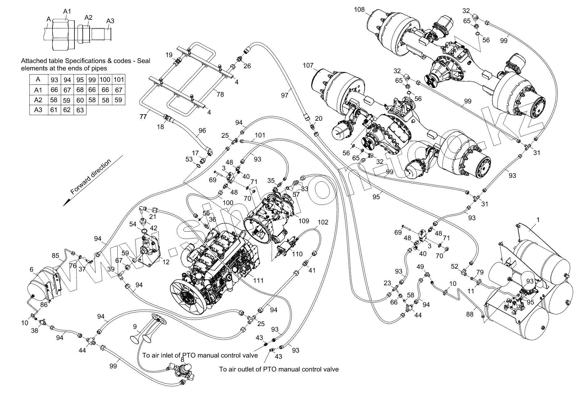 Каталог запасных частей к технике: Zoomlion ZLJ5500V3. AIR BRAKE SYSTEM (AUXILIARY BRAKE) D00672303500000002Y