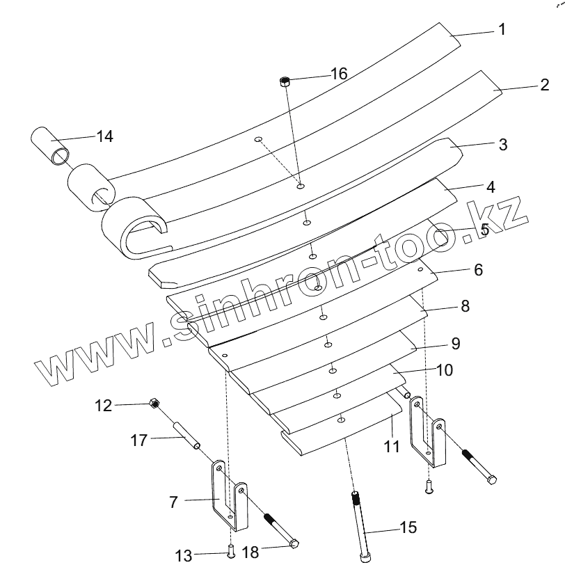Каталог запасных частей к технике: Zoomlion ZLJ5500V3. REAR LEAF SPRING ASSY D00676602900440001_101324Y