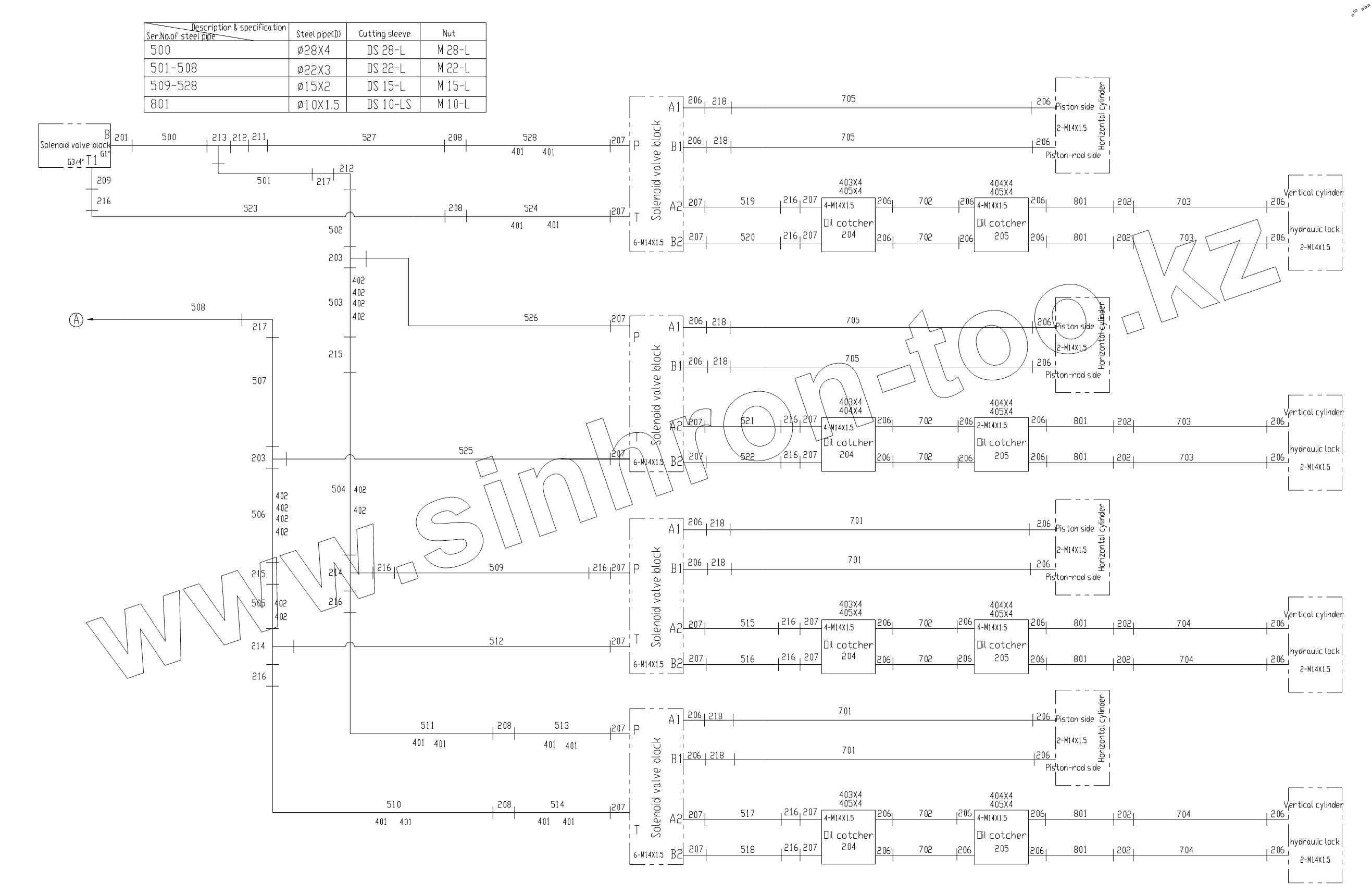 Каталог запасных частей к технике: Zoomlion ZLJ5550JQZV3.2. PIPE LAYOUT DRAWING – HYDRAULIC CIRCUIT, OUTRIGGER D00671834410000000Y