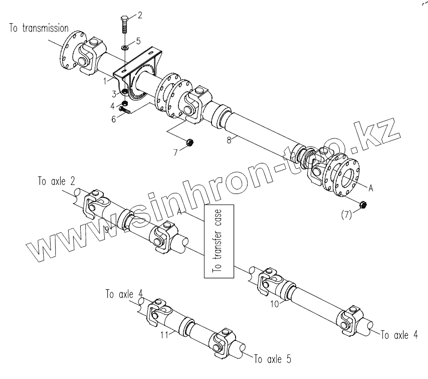 Каталог запасных частей к технике: Zoomlion ZLJ5550JQZV3.2. PROPELLER SHAFT LAYOUT D00672602220000000Y