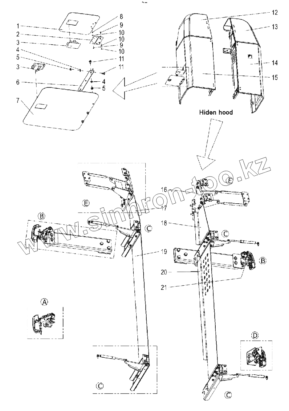 Каталог запасных частей к технике: Zoomlion ZT20J. Hood 00771101100000000