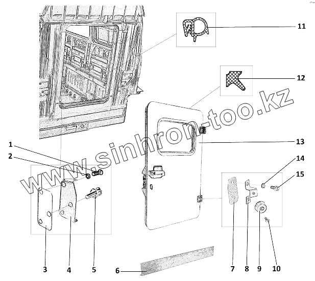Каталог запасных частей к технике: ЗЗГТ ГАЗ-34039 (Ирбис). Дверь задняя и декоративная накладка
