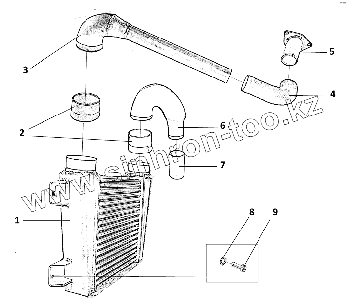 Каталог запасных частей к технике: ЗЗГТ ГАЗ-34039 (Ирбис). Охладитель наддувочного воздуха