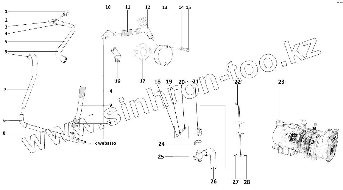Каталог запасных частей к технике: ЗЗГТ ГАЗ-34039 (Ирбис). Трубопроводы , шланги, Предпусковой подогреватель Webasto Thermo 90ST24V