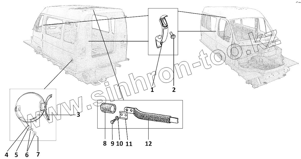 Каталог запасных частей к технике: ЗЗГТ ГАЗ-3409 (Бобр). Поручни, крышка топливозаливной горловины