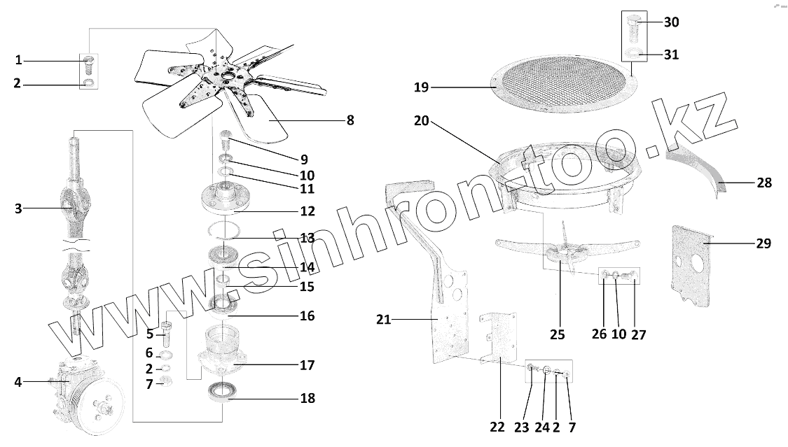 Каталог запасных частей к технике: ЗЗГТ ГАЗ-3409 (Бобр). Привод вентилятора, кожух, кронштейн