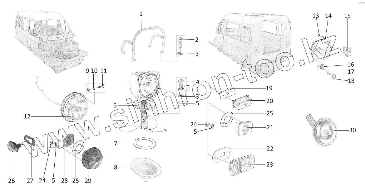 Каталог запасных частей к технике: ЗЗГТ ГАЗ-3409 (Бобр). Устройства осветительной и световой сигнализации, звуковой сигнал